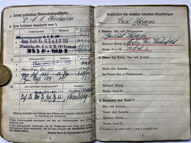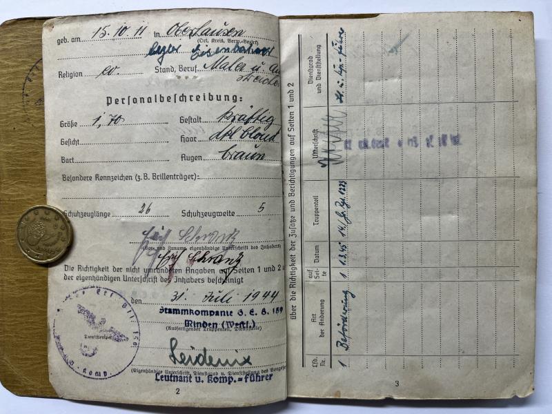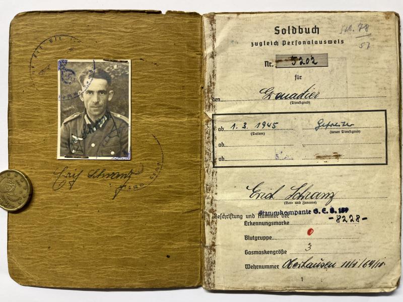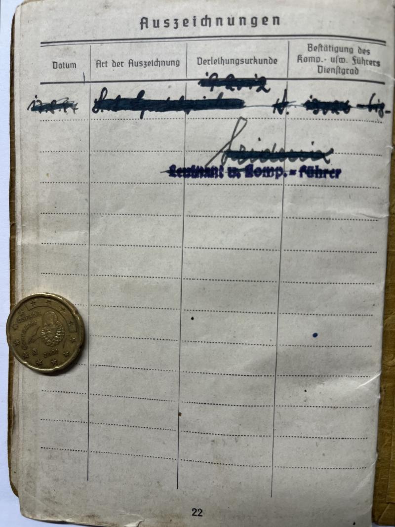 Soldbuch and citation of "Gefreiten" Erich Schranz who served within few different units.