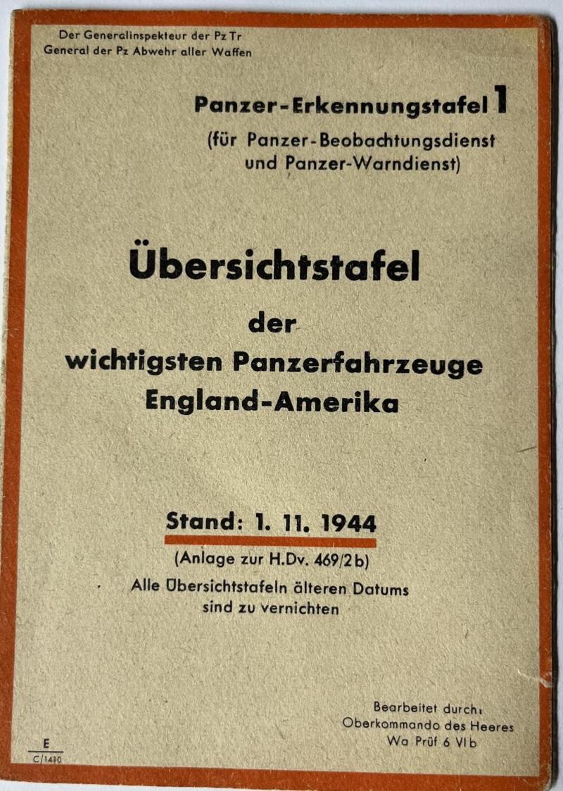 "Übersichtstafel" (recognition manual nr.1) concerning British/American "Panzerfahrzeuge" which gave an overview of British/American panzers and armoured vehicules to ensure the right recognition of the enemy panzers.