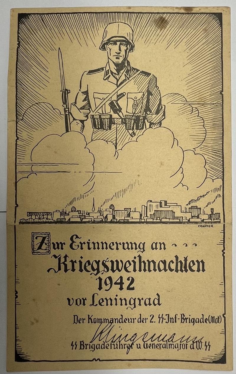 "Waffen-SS" - "Zur Erinnerung an Kriegsweihnachten 1942 vor Leningrad" - commemorative certificate