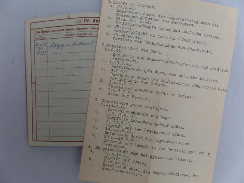 Wehrpaß and citations of "Oberfeldwebel der Reserve" Hans Fischer who served within Pz.Rgt.1 of the 1 Pz.Div.