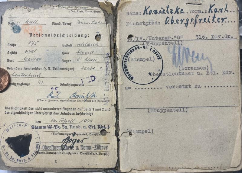 Nice Soldbuch grouping of Konietzke who was trained in Hilversum / Niederlande (Netherlands) in 1944!!
