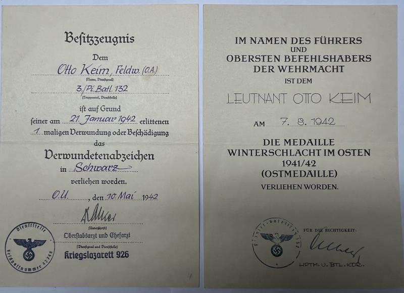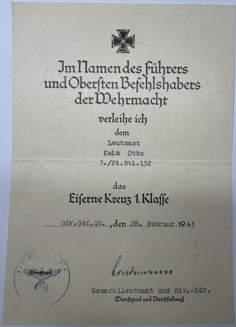 Citation grouping of "Leutnant" Otto Keim who served within pionier Btl.132 of the 132.Inf.Div.