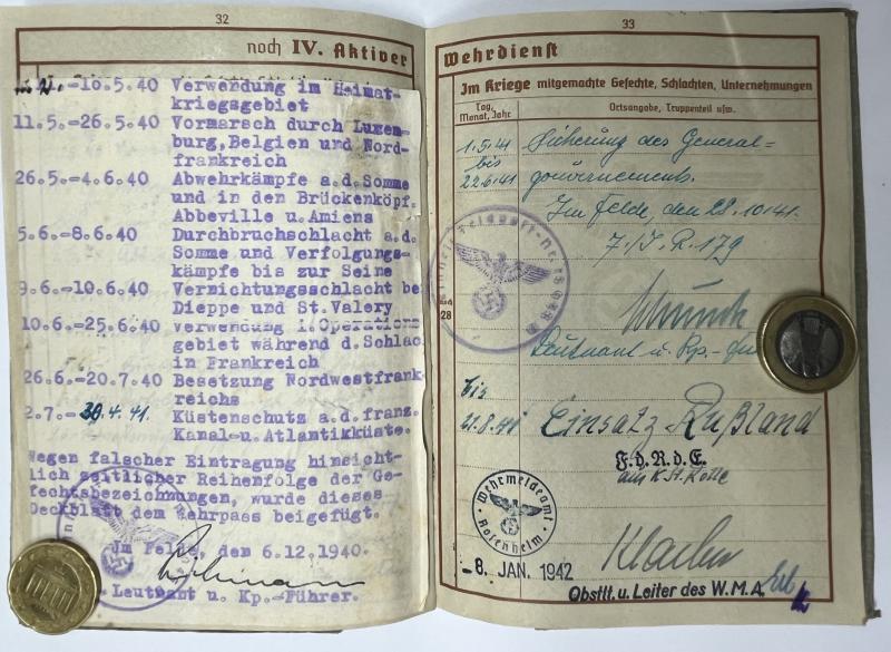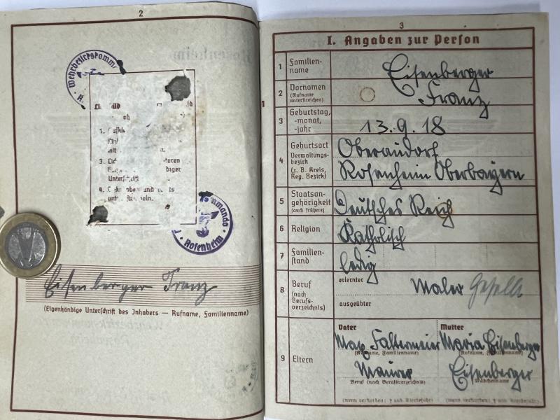 Wehrpass of "Gefreiten" Franz Eisenberger who served within Inf.Rgt.179 of the 57.Inf.Div.