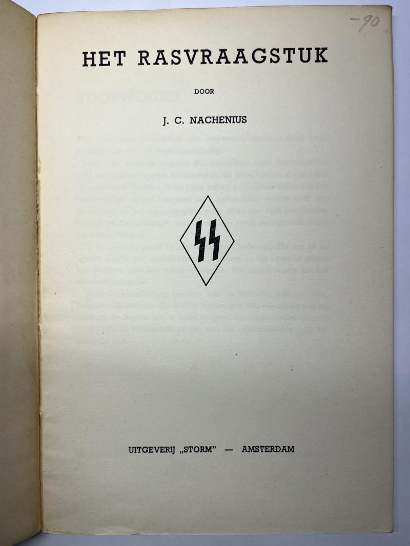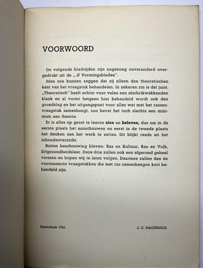"Het rasvraagstuk" (The Race Question) is a unusal and special edition of the Dutch Germaaansche SS "Vormingsbladen" which has been published by "Uitgeverij Storm" in Amsterdam/Holland