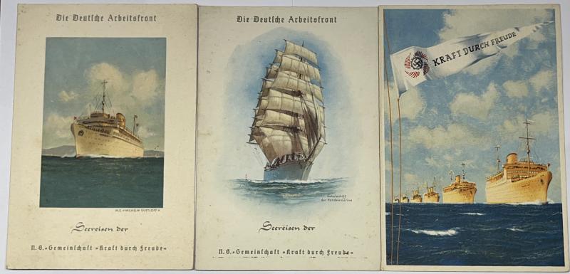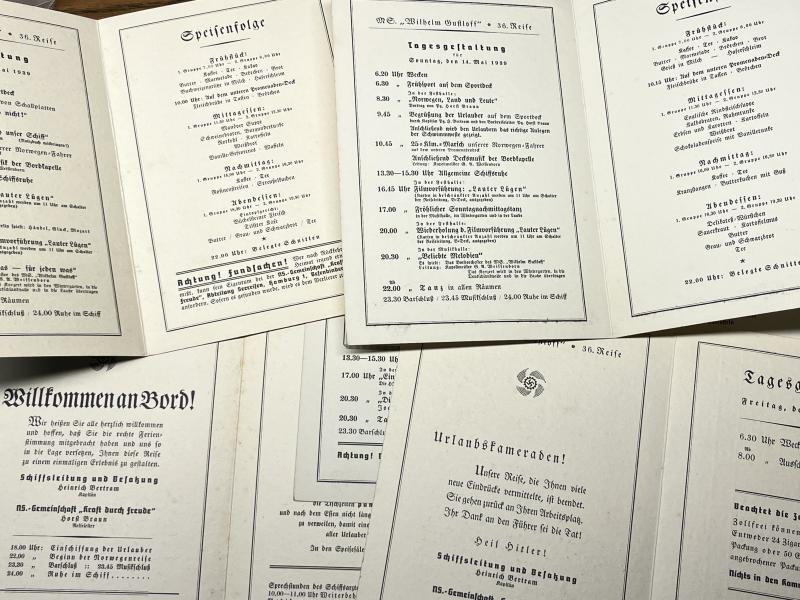 Attractive "KDF" lot with 6 different menu cards (Wilhelm Gustloff 2 x) and a KDF Salzkammergut holiday guide.