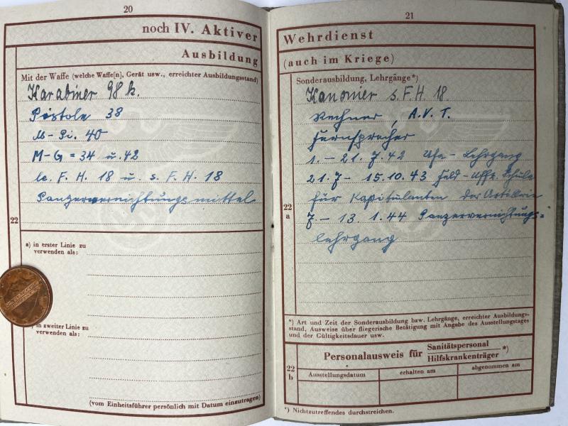 Schürmeyer was trained for MP40, MG 34 ,MG 42, le FH 18, schw.FH 18 and "Panzervernichtüngsmittel" (ie. Panzer-destruction training)