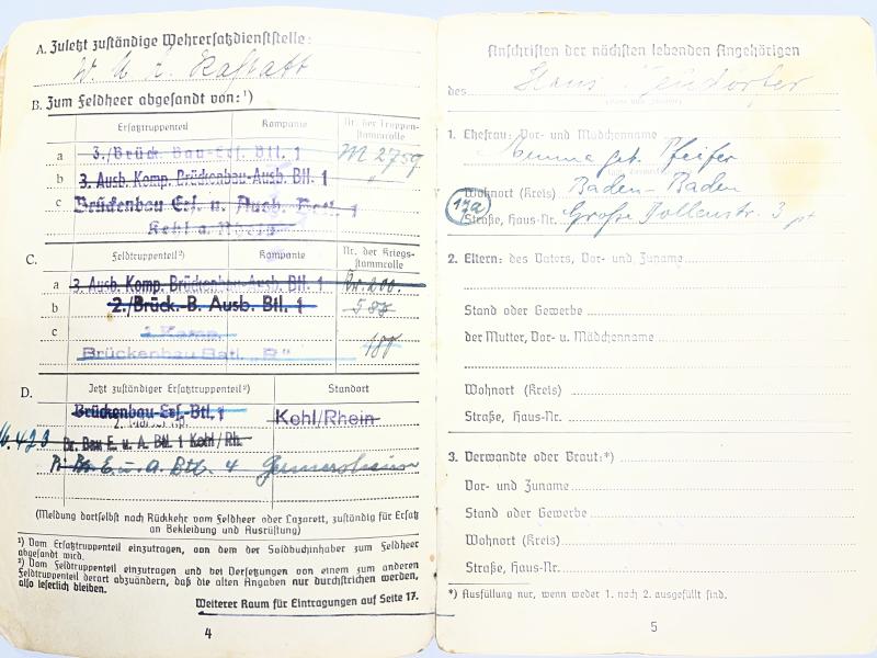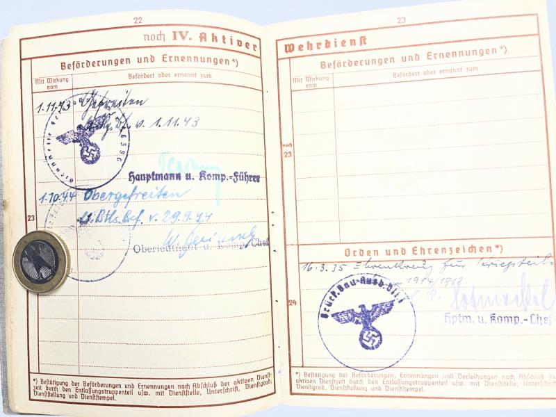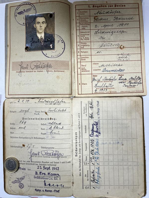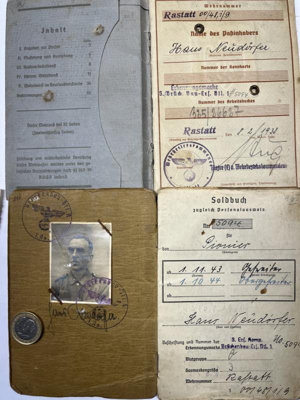 Wehrpass/ and Soldbuch of "Obergefreiten" Hans Neudörfer who served within few different pioneer units.