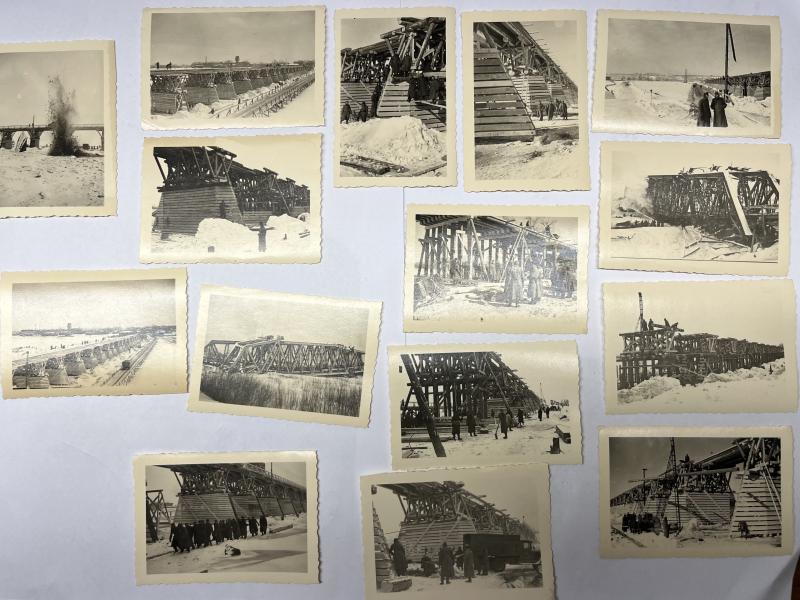 3) 15 photos of Neudörfer which show a wooden bridge being constructed.