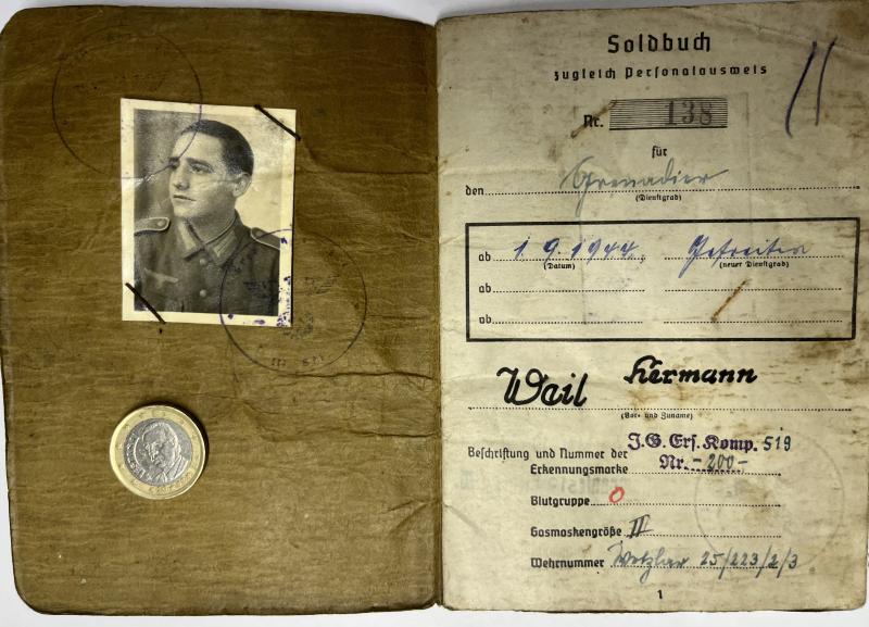 Soldbuch of "Gefreiten" Hermann Weil who served within Gren.Rgt.584 of the 319.Inf.Div.