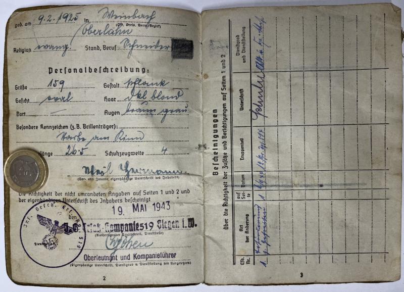 Soldbuch - 319.Inf.Div. - Weil