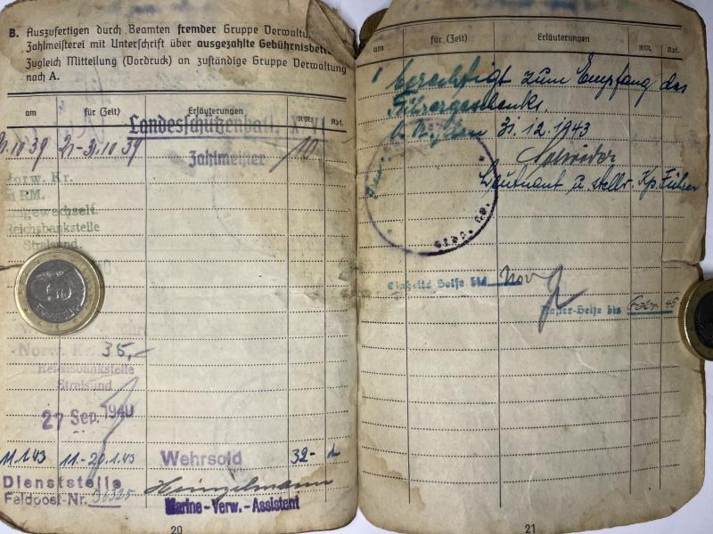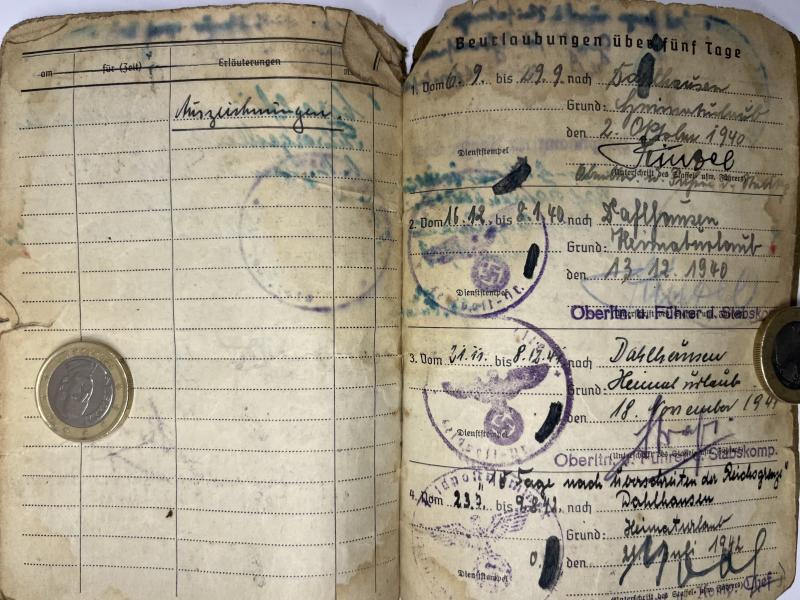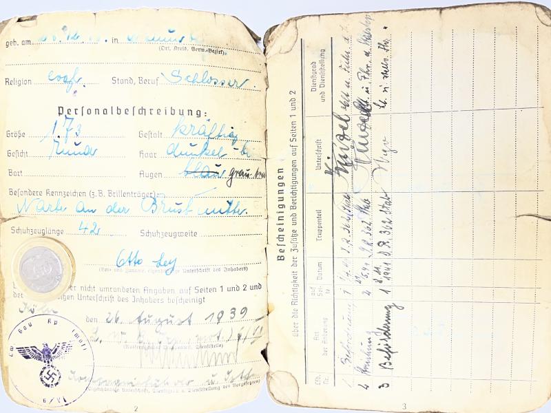 Soldbuch of "Obergefreiter" Otto Ley who served first within a Luftwaffe Bau (pioneer) unit and was transferred into the "Heer" (Army).