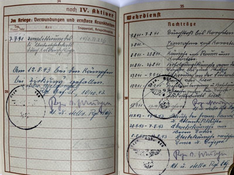 Wehrpass of "Oberleutnant" Herbert Hermann who served within severla different units before ending up within (Pz.Jg.)Gren.Rgt.848 of the 282.Inf.Div.