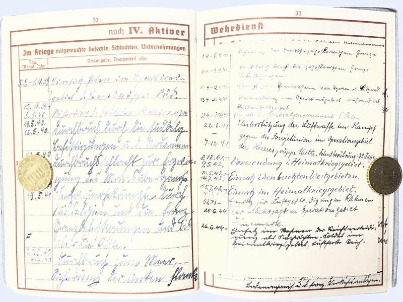 Wehrpass of "Oberfeldwebel" Hans Engelhardt who served within diverse Luftnachrichten units.