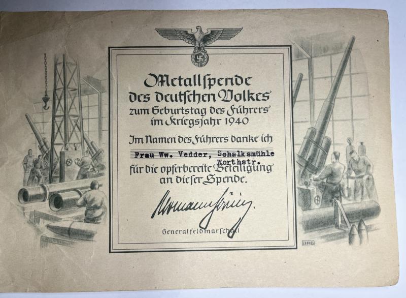 3 different Reichs-Spinnstoff/Metallspende certificates.