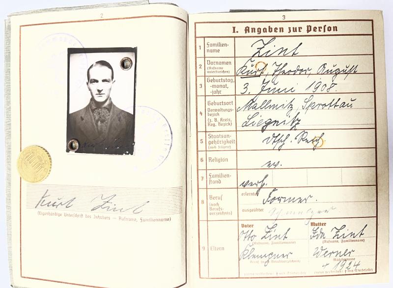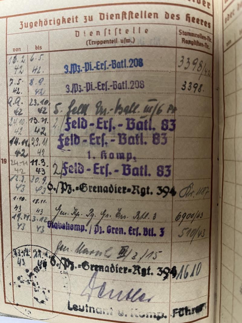 Wehrpass of "Unteroffizier" Kurt Zint who served within Pz.Gren.Rgt.394 of the 3.Pz.Div.