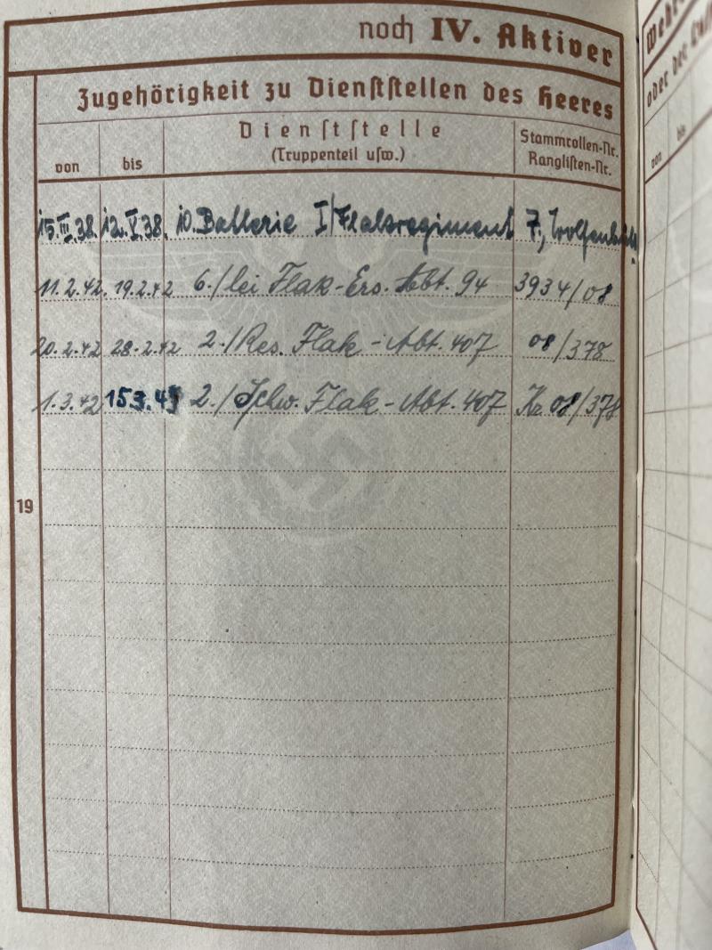 Wehrpass - Luftwaffe - Schw.Flak Abt.407 - Schindelmeiser