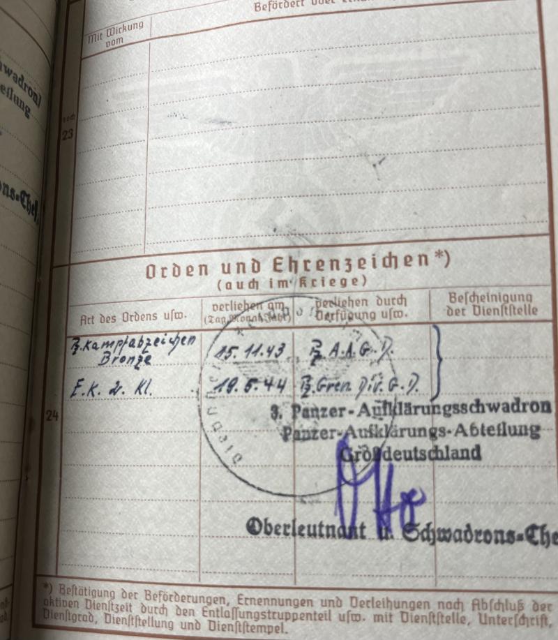 Batke who served as "Kradschütze" was awarded the "Panzerkampfabzeichen in Bronze" and the EK II for his efforts during many fightings (Kursk etc.)