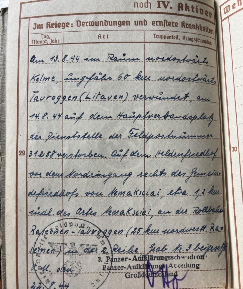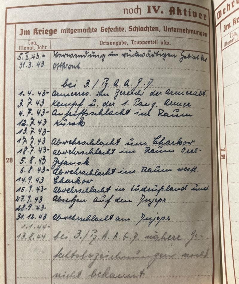 Wehrpass of "Gefreiten" Erwin Batke who served within Pz.Aufklärungsschwadron ,Pz.Aufklärungs-Abt."Grossdeutschland" of the Pz.Gren.Div. "Grossdeutschland".