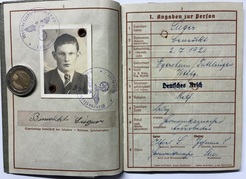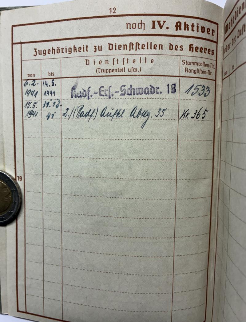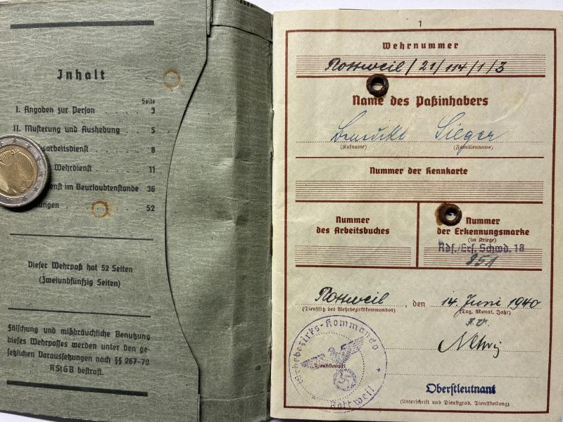 Wehrpass grouping of "Gefreiter" Benedikt Sieger who served within "Radfahr" Aufklärungs Abtl.35 (bicycle reconnaissance) of the 35.Inf.Div.
