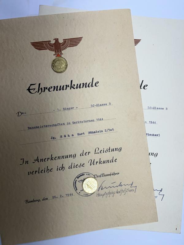 2) "Ehrenurkunde" for the "Siegermannschaft DJ Klasse B" for Kurt Hühn. read more