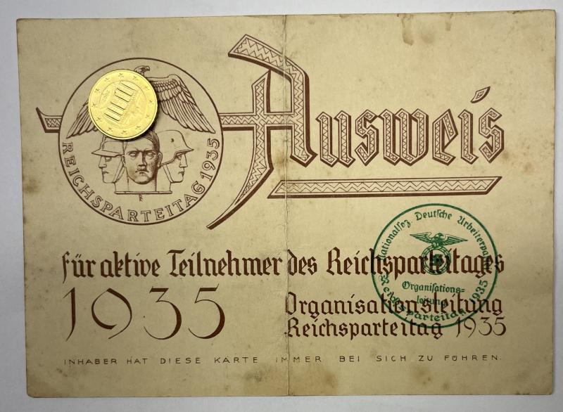 "Ausweis" (I.D.) for visiting the "Reichsparteitag" in 1935.