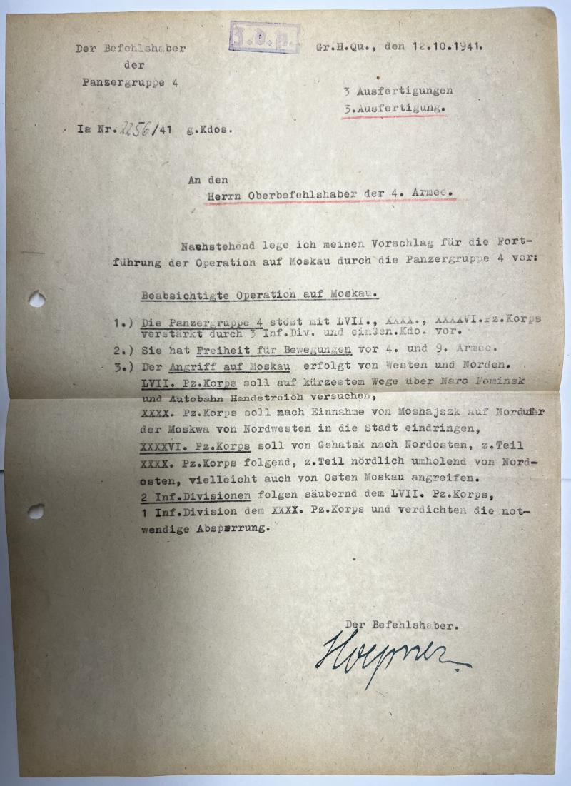 "Fortführung der Operation auf Moskau" (continuation of the operation on Moscow) by Panzergruppe 4.